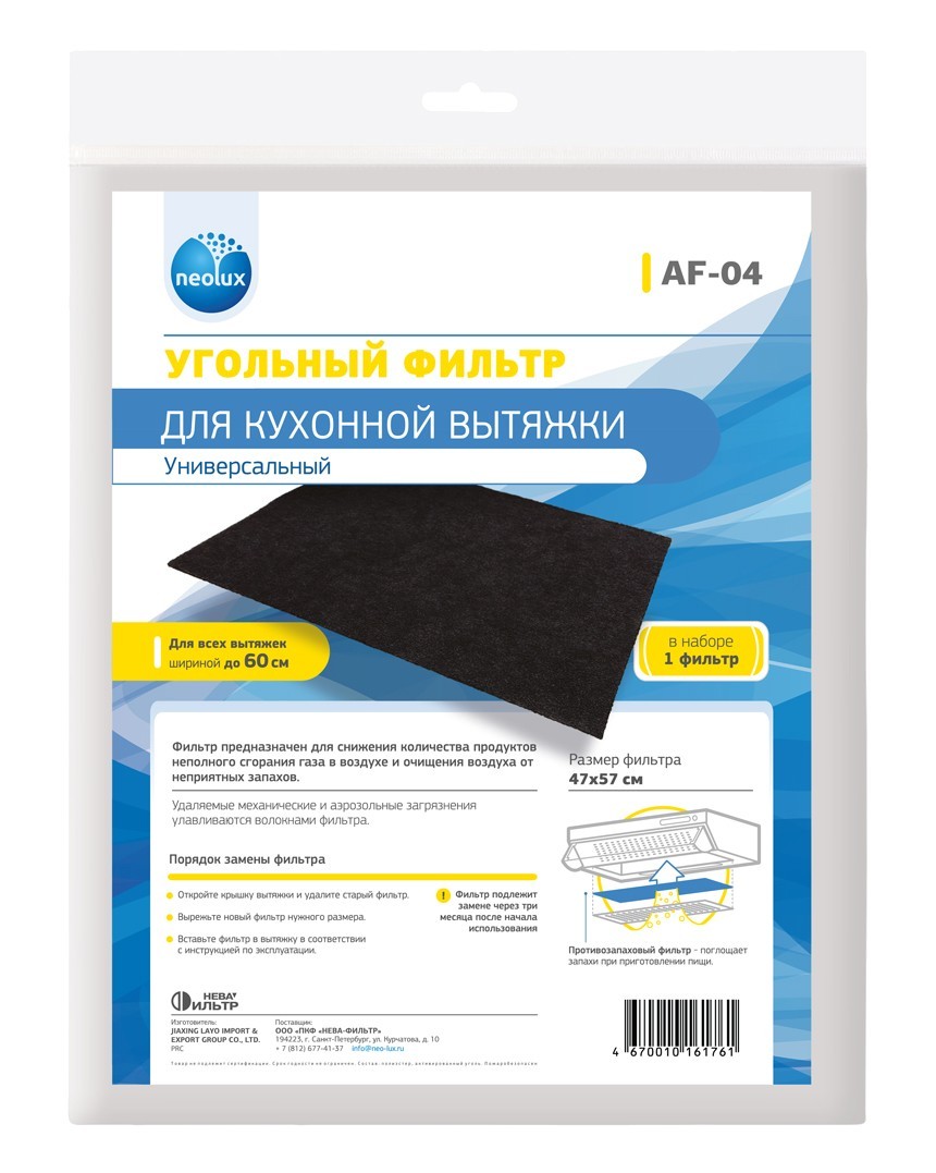 AF-04_NEOLUX Угольный фильтр для кухонных вытяжек (уп. 1 шт. 47х57 см.)