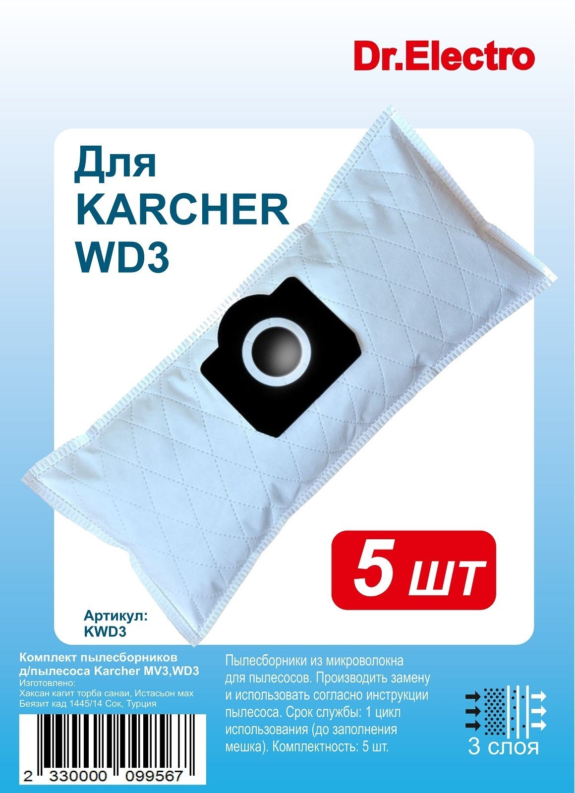 В комплекте 5 пылесборников, материал – синтетическое волокно. Размер пылесборника 27см х 47 см. Объем – 5,5 литров
